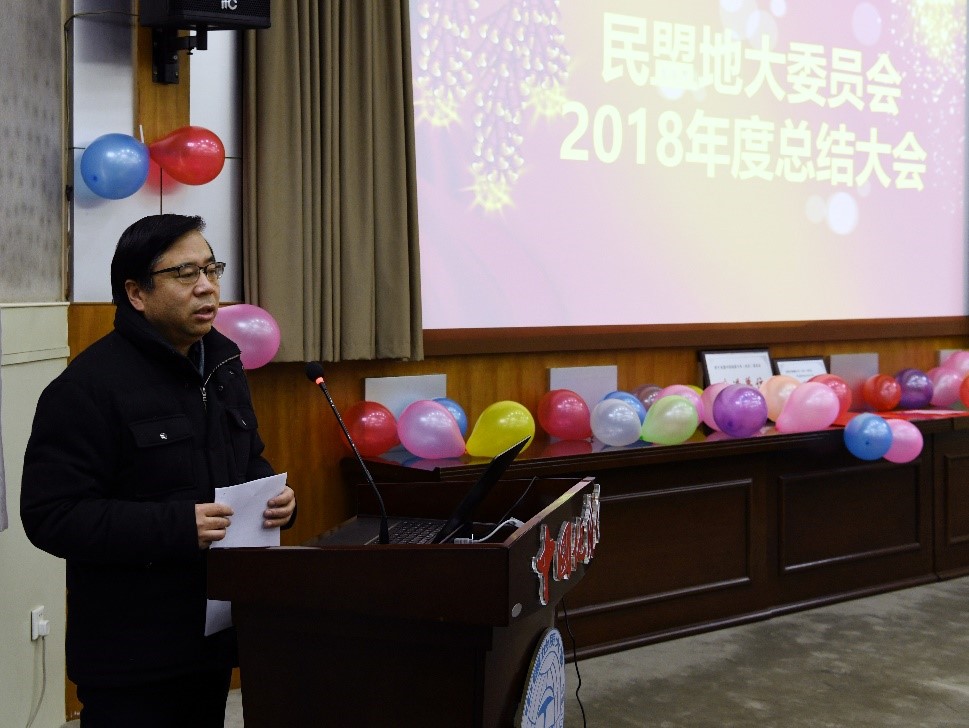 魏昌华主委做年度总结报告。他从组织建设、参政议政、活动开展、思想宣传四个方面总结了2018年度委员会的工作,并对2019年进行了展望。2018年,委员会取得了非常突出的工作成果,民盟中央、民盟湖北省委先后授予委员会“思想宣传先进集体”和“先进集体”荣誉称号,地大盟员撰写的调研报告有两项被推荐为省“两会”发言材料,其中一项得到蒋超良书记的高度评价。