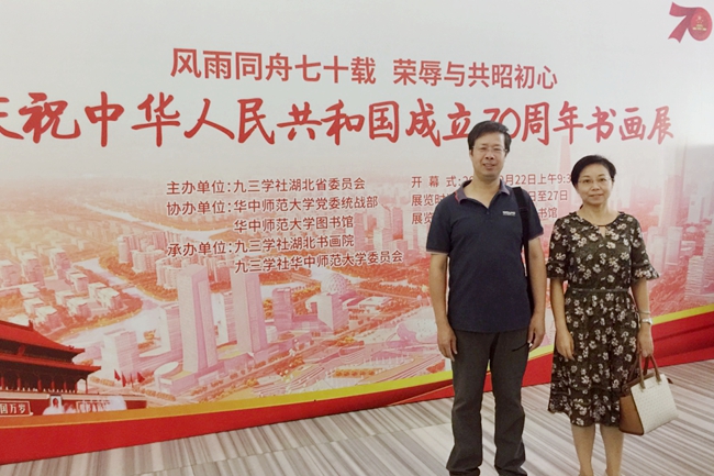 9月22日,九三学社地大委员会组织社员前往华中师范大学参加由九三学社湖北省委筹办的“‘风雨同舟七十载,荣辱与共昭初心’——庆祝中华人民共和国成立70周年书画展”。据悉,在新中国成立70周年之际,九三学社省委会旨在通过多样的文化活动进一步拓宽思想建设、文化建设渠道,把书法和绘画艺术融入文化建设之中,向新中国成立70周年献礼,向中国共产党领导的多党合作与政治协商制度确立70周年献礼,奋力书写多党合作事业新篇章。