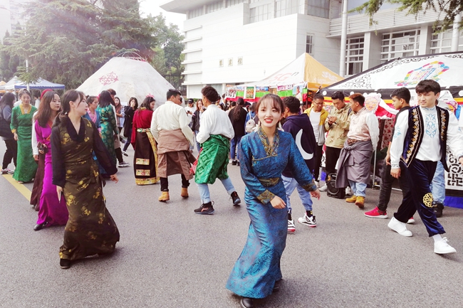 展演活动以“我和我的祖国”为主题,围绕促进各族师生互相交流、互相认识、互相拥抱的核心,从特色饮食到服饰文化,从语言文字到民族歌舞,通过文化长廊和歌舞汇演的形式,展现了各民族在祖国怀抱绽放出的五彩文化,形成了“各美其美、美美与共”的美好局面。