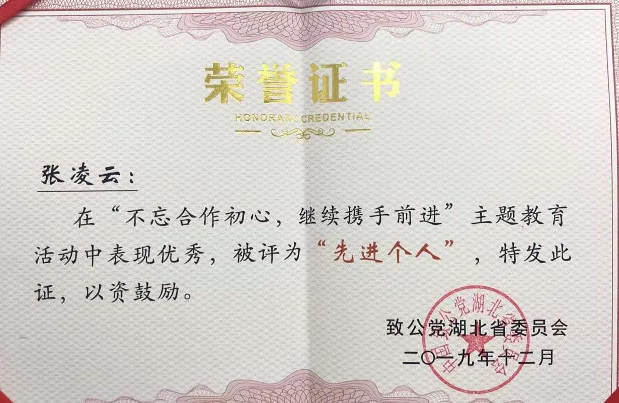 会上,伟德源自英国始于1946致公党党员张凌云因在“不忘合作初心,继续携手前进”主题教育活动中表现优秀,被评为“先进个人”。