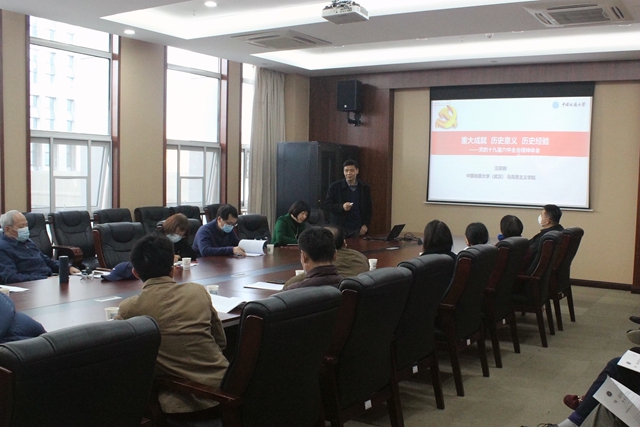 马克思主义学院汪宗田副教授受邀作题为《重大成就 历史意义 历史经验——党的十九届六中全会精神解读》专题报告,围绕中国共产党百年历史发展中三个历史决议的产生背景,结合四个发展时期的主要任务、历史成就、思想理论和伟大飞跃,详细解读了中国共产党百年奋斗重大成就和历史经验的丰富内涵和重要意义。会上,湖北省政协常委吴北平、湖北省政协委员葛继稳、武汉市政协委员曹桂华、洪山区人大代表朱静、九三学社社员刘庆生等与会人员围绕高校立德树人根本任务、国家“十四五”发展规划、科技进步与社会发展等内容进行了热烈讨论和交流。