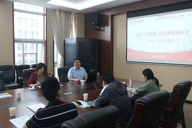 5月12日,“统一战线献礼党的二十大·同心论坛”(2022年第二期)在南望山校区举行,湖北省政协委员、经济管理学院邓宏兵教授作“发挥专业优势 用真情服务社会”的专题报告。