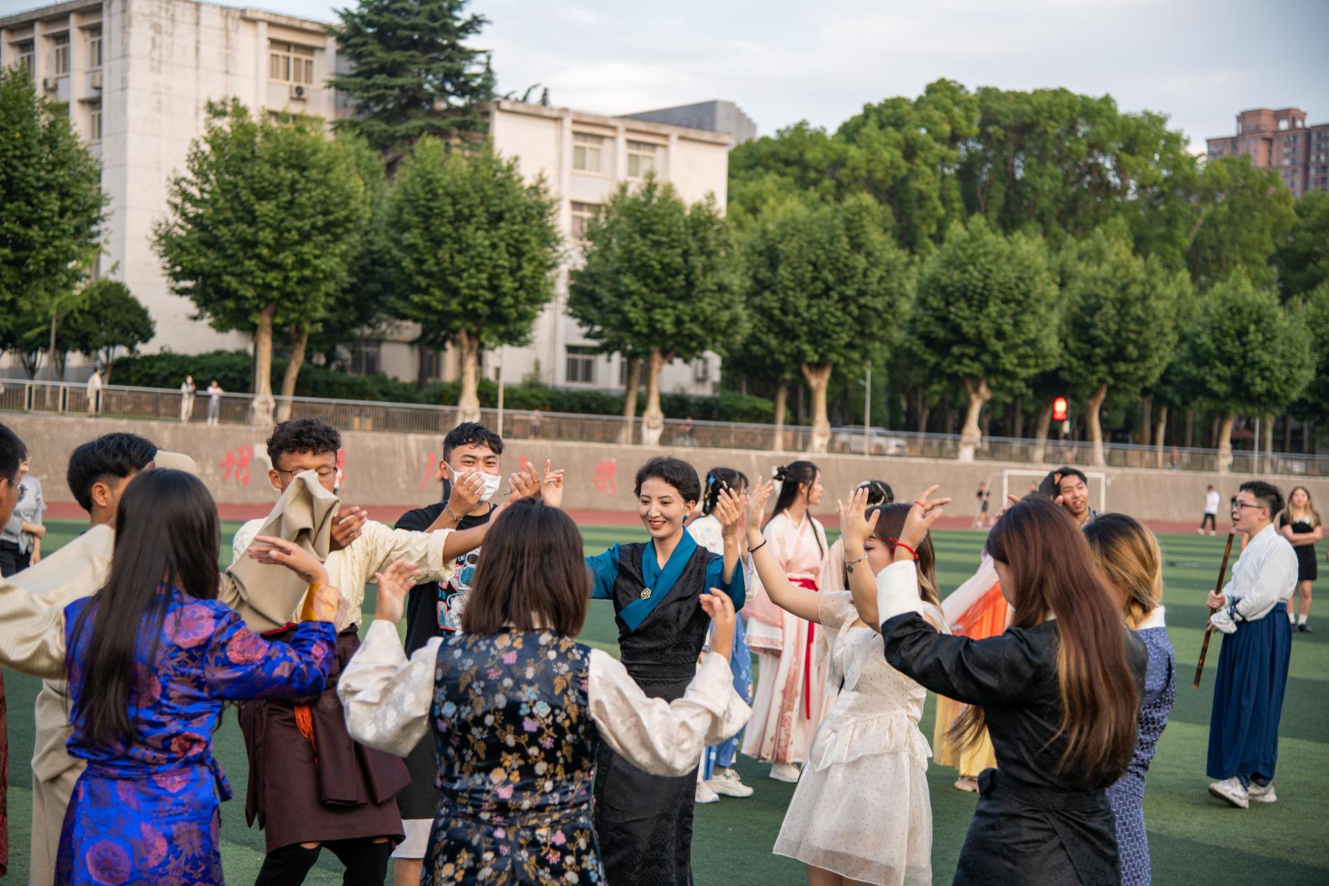 高等研究院2020级汉族研究生熊伟说:“今年,我的生活基本就是课堂、食堂、寝室,学校开展的这个活动,让我心情放松、愉悦。我穿上蒙古族的服装跳起来,切身感受到中华文化的之美。”