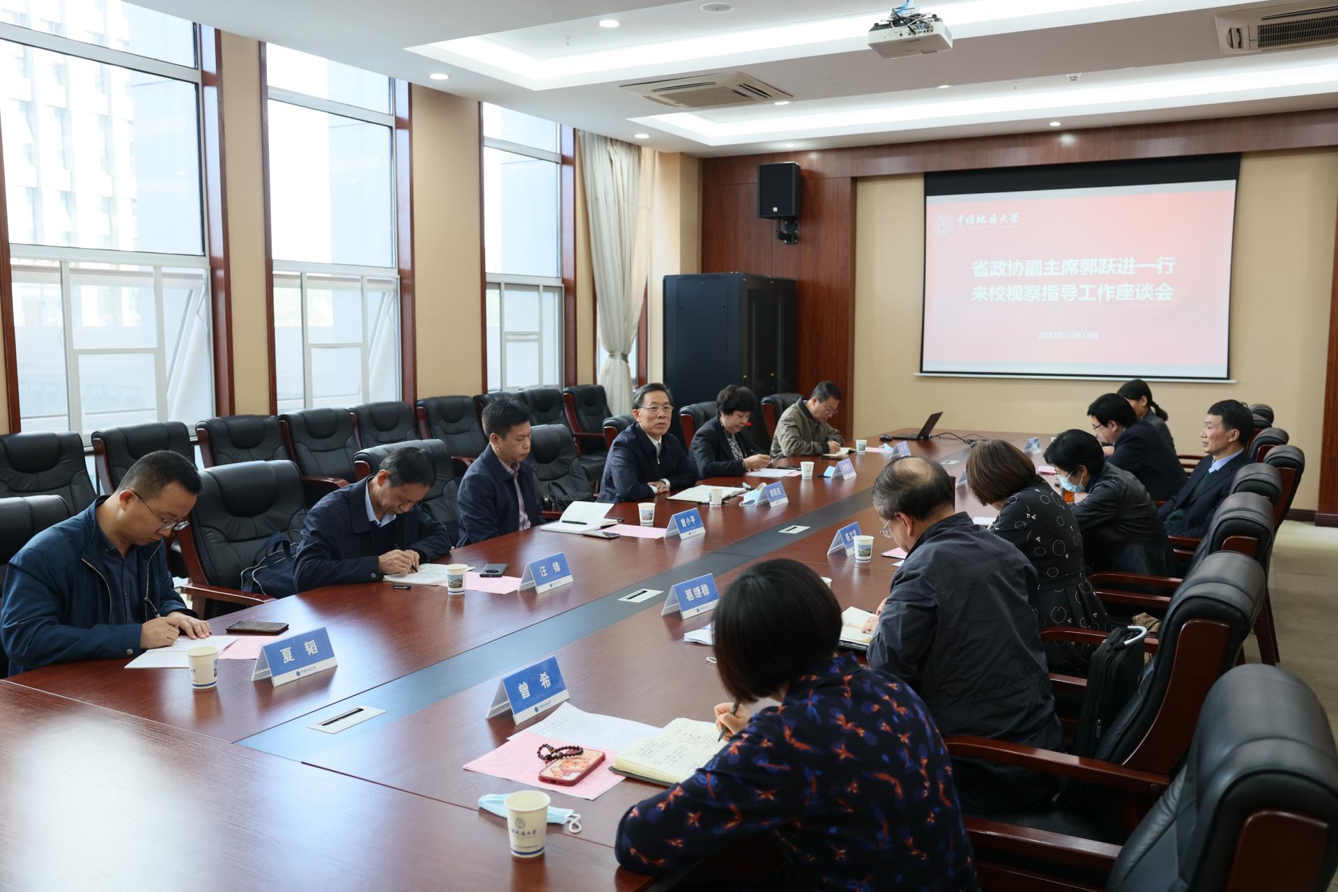 黄晓玫对郭跃进一行的到来表示欢迎,对省政协长期以来对学校事业发展的关心支持和对学校代表人士的指导关爱表示感谢。她表示,学校将持续发挥学科专业和人才优势,为解决国家重大战略实施及重大工程建设中的关键资源环境问题贡献力量。希望省政协对学校积极参与国家新一轮地质找矿、生态文明建设、长江保护、新能源开发、装备制造等提供更多支撑平台。