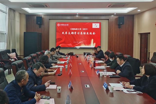1月11日,民革地大支部召开2023年度工作总结交流会。民革省委会秘书长夏铸,组织部部长刘磊,校党委书记黄晓玫、副书记王甫,党委常委、组织部部长、统战部部长陈文武应邀参加会议。民革地大支部副主委、工程学院副院长教授倪晓阳主持会议。