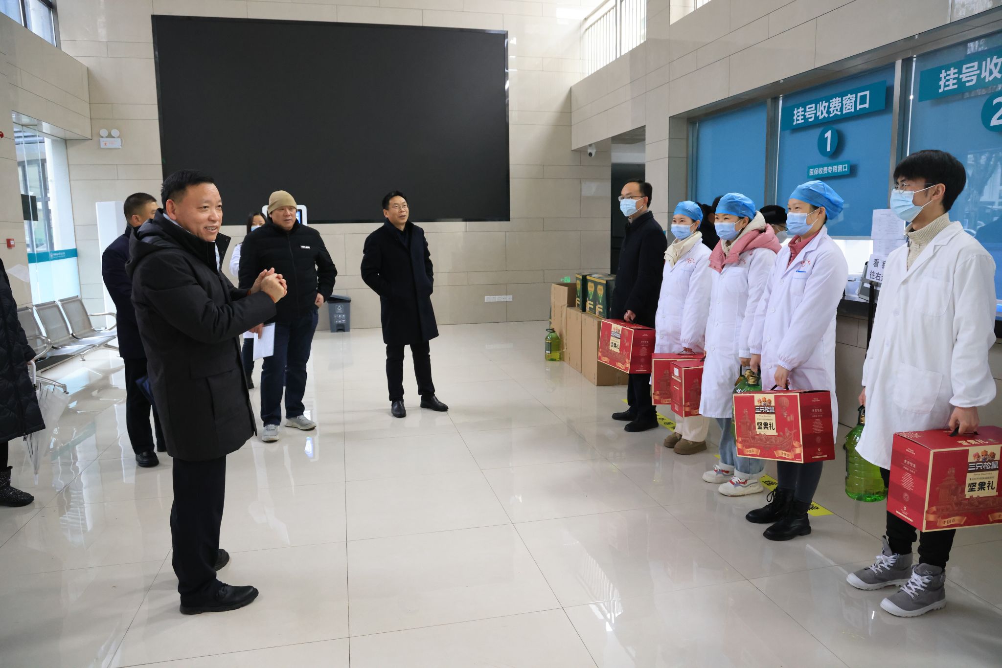 王林清、王甫带队在南望山校区开展慰问,先后到教学综合楼、地大社区居委会、校园规划与基建处、校医院、西一门、图书馆、西苑食堂、西区60栋学生宿舍、信息楼看望慰问坚守在岗位一线的教职工,他们的辛勤工作表示感谢,祝愿大家新春快乐、身体健康。