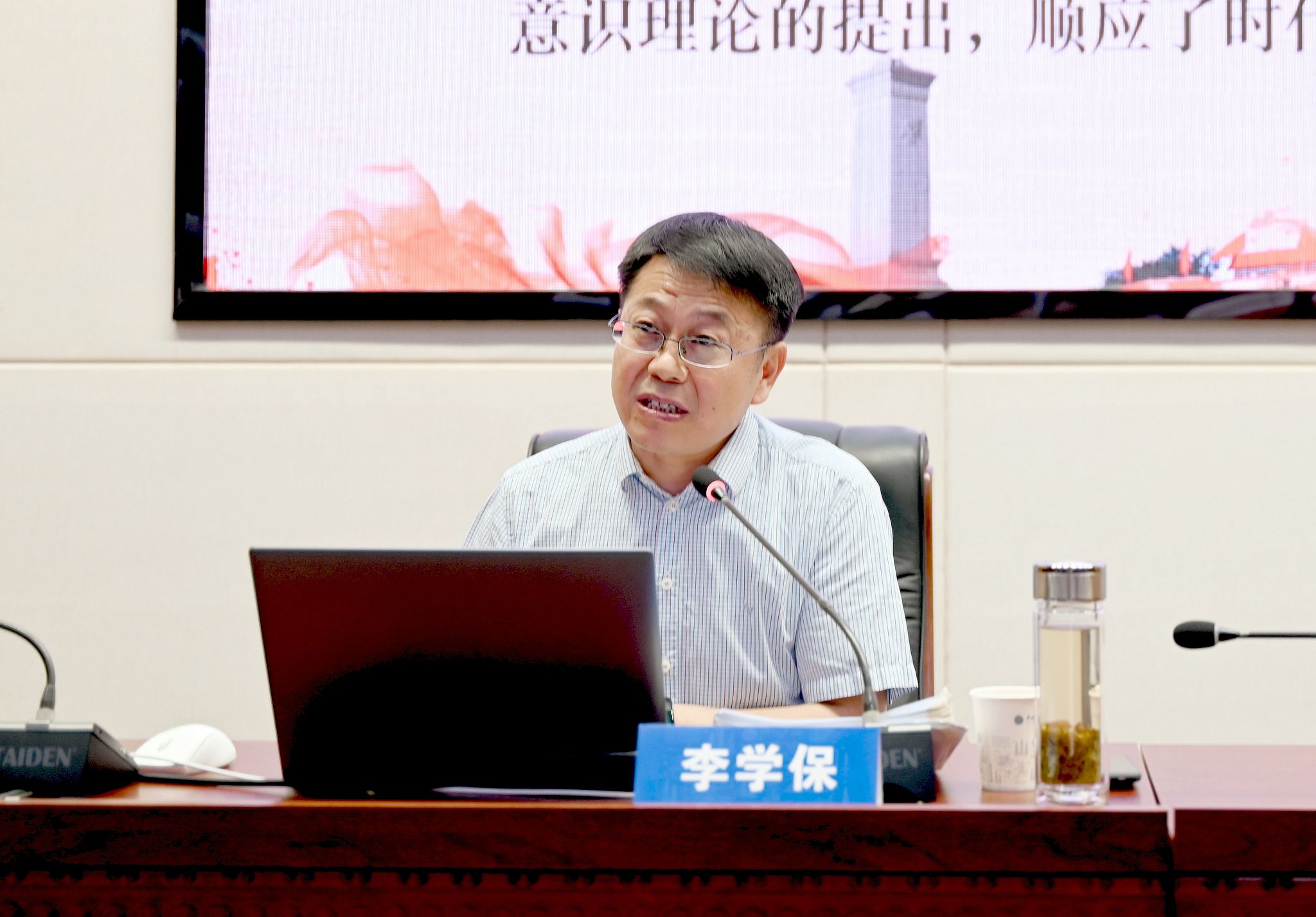 李学保以《铸牢中华民族共同体意识的理论与实践》为题,从深入领会习近平总书记关于加强和改进民族工作的重要思想、深刻认识铸牢中华民族共同体意识的科学内涵及重大意义、高校铸牢中华民族共同体意识教育的思考等三个方面作报告。他通过大量案例及数据,分析了当前民族工作面临的新形势、新任务和新挑战,总结了党的十八大以来民族工作基本经验,强调要坚决反对历史虚无主义和各种错误思潮。他还讲解了“十二个必须”理论体系、中华民族共同体的内涵、铸牢中华民族共同体意识的基本任务及深刻认识中华民族共同体意识的重大意义等。
