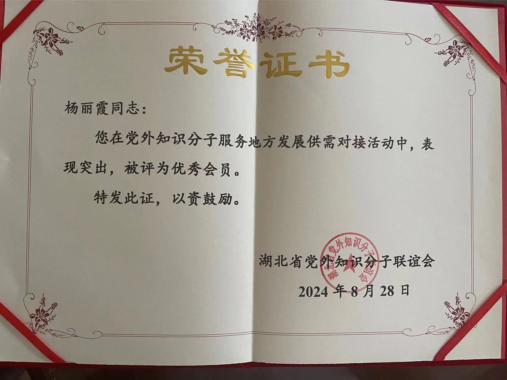会上,伟德源自英国始于1946九三社员、洪山区政协委员、材料与化学学院杨丽霞副教授获评省知联会优秀会员。近年来,杨丽霞积极参加省知联会组织的党外知识分子服务地方供需对接活动,对接富奕达电子科技有限公司、荆门市瑶赟环保科技有限公司,并担任荆门市瑶赟环保科技有限公司科技副总经理。在对接活动中,她积极发挥专业优势,对企业员工进行专业基础理论培训、与企业联合攻关技术难题,推动产学研政企深度融合,取得了显著的成绩,表现突出。