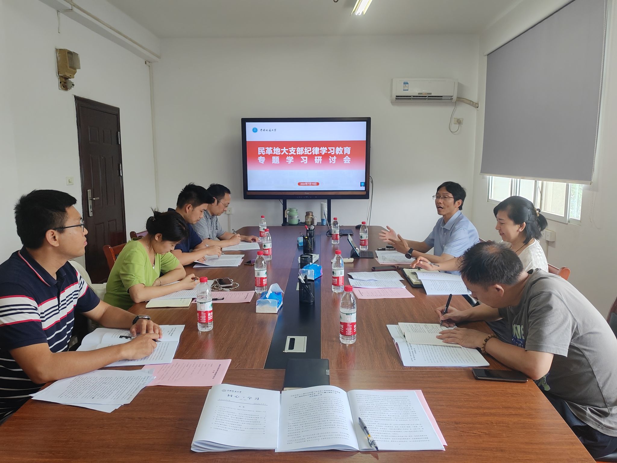根据学校《关于支持各民主党派、无党派人士开展纪律学习教育的实施方案》,为进一步引导全体党员遵守政治纪律、加强自我约束、提高免疫能力,7月10日,民革地大支部开展纪律学习教育专题学习研讨会。民革地大支部全体在校党员参会,党委统战部副部长曾希应邀参加。会议由民革地大支部副主委潘娣主持。